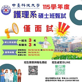 中臺科技大學115學年度護理系碩士班甄試~僅面試
